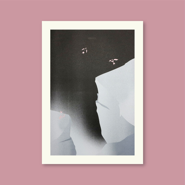 Illustration A3 imprimée en risographie 3 couleurs sur papier 150g. Édition limitée, signée et numérotée avec la marque Nikki Pouch en gaufrage. Conçue à Bordeaux et imprimée en France.