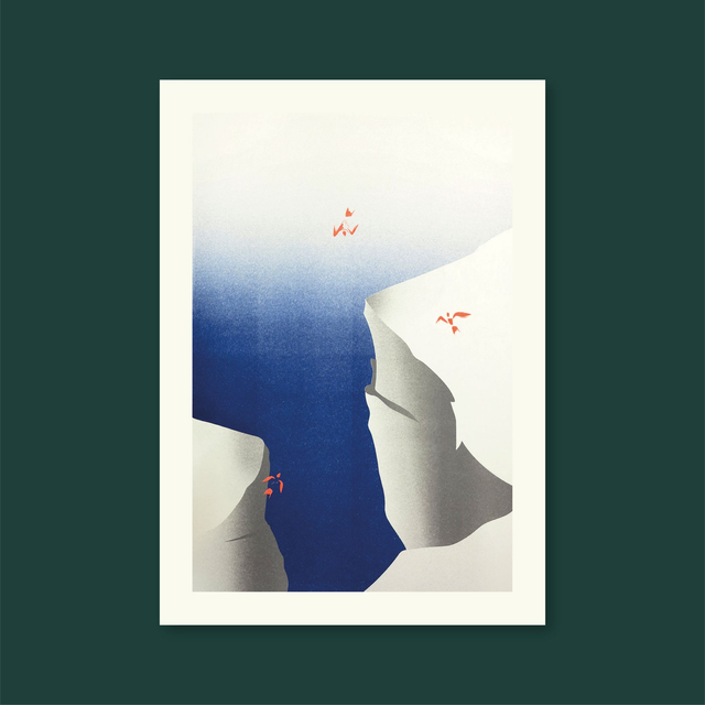Nos illustrations en risographie peuvent te rappeler les feutres à souffler. Elles sauront tes faire voyager en plus de colorer délicatement tes murs. Elles fonctionnent seules ou en diptype avec la version nuit.