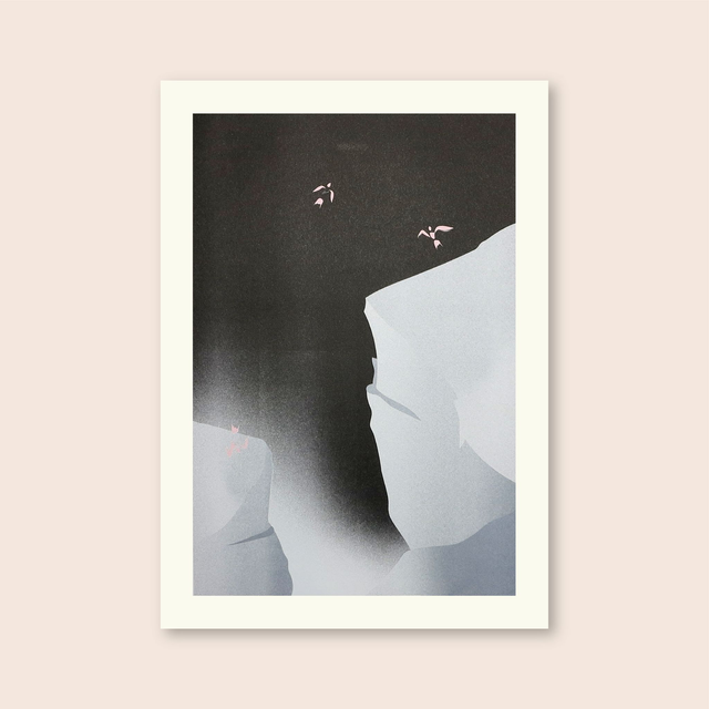 Illustration A3 imprimée en risographie 3 couleurs sur papier 150g. Édition limitée, signée et numérotée avec la marque Nikki Pouch en gaufrage. Conçue à Bordeaux et imprimée en France.
